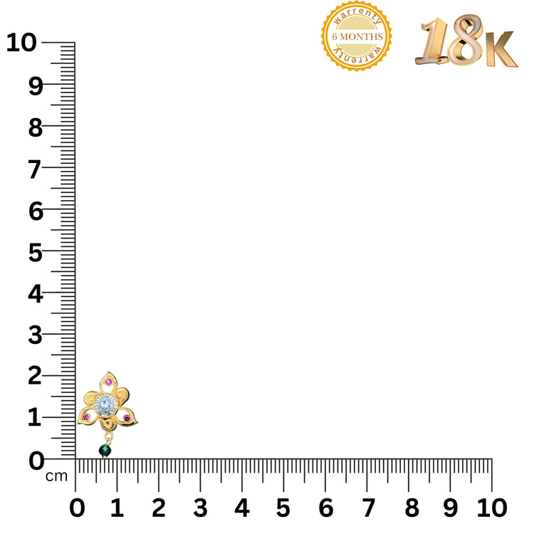 NJ Arts Gold-Plated Floral Stud Earrings with AD/CZ Center Stone Yellow Gold 18kt Stud Earring