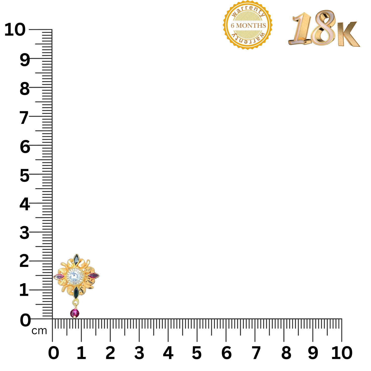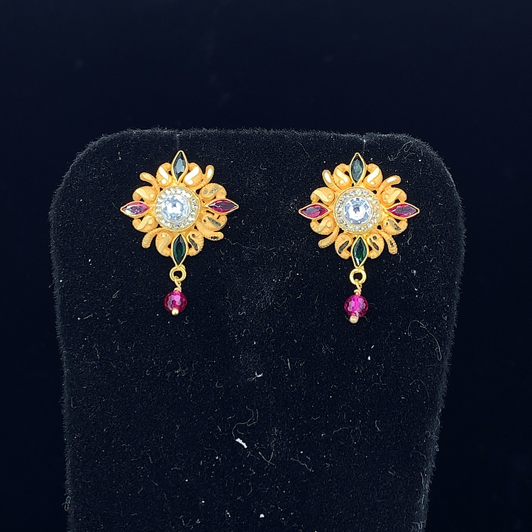 NJ Arts Gold Plated Traditional Floral Stud Earrings showcase timeless craftsmanship with 18kt yellow gold plating and brilliant clear AD/CZ center stones.